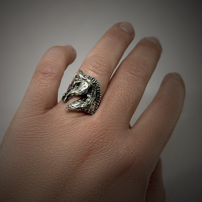Se aprecia un modelado clásico y poco definido de una cabeza de caballo.