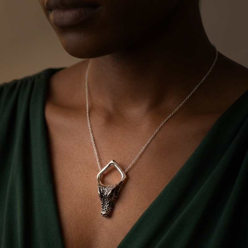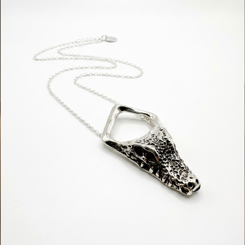 Diseño contemporáneo con motivo de cabeza de caimán, en plata.
