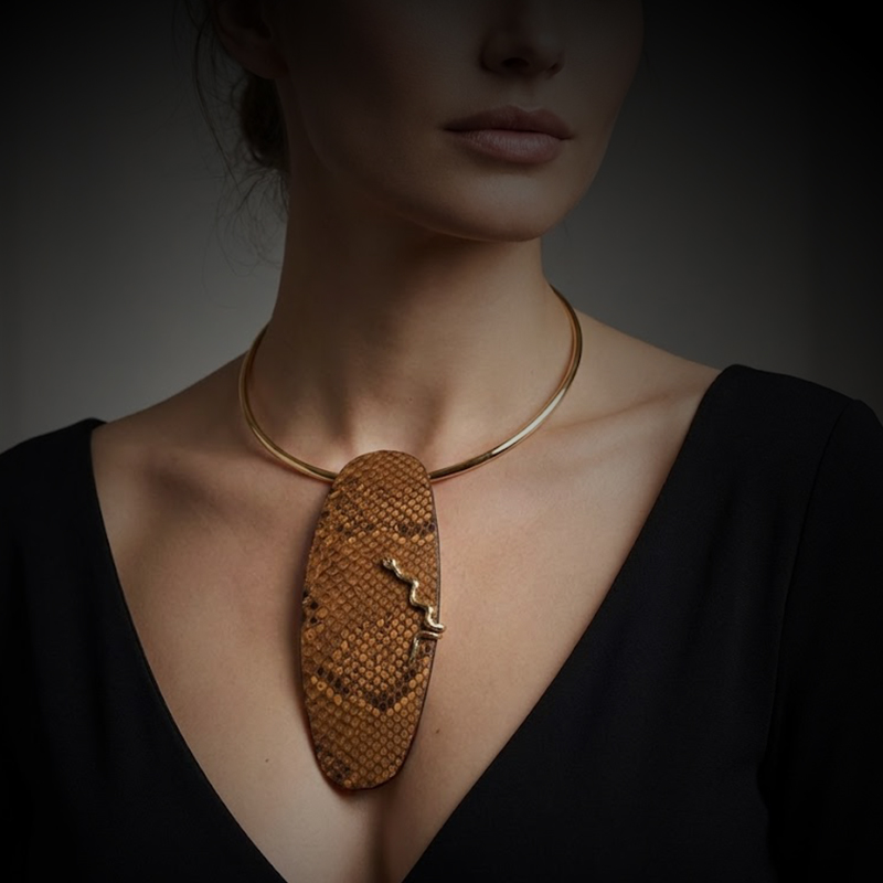 Maxi-colgante piel de serpiente marrón.